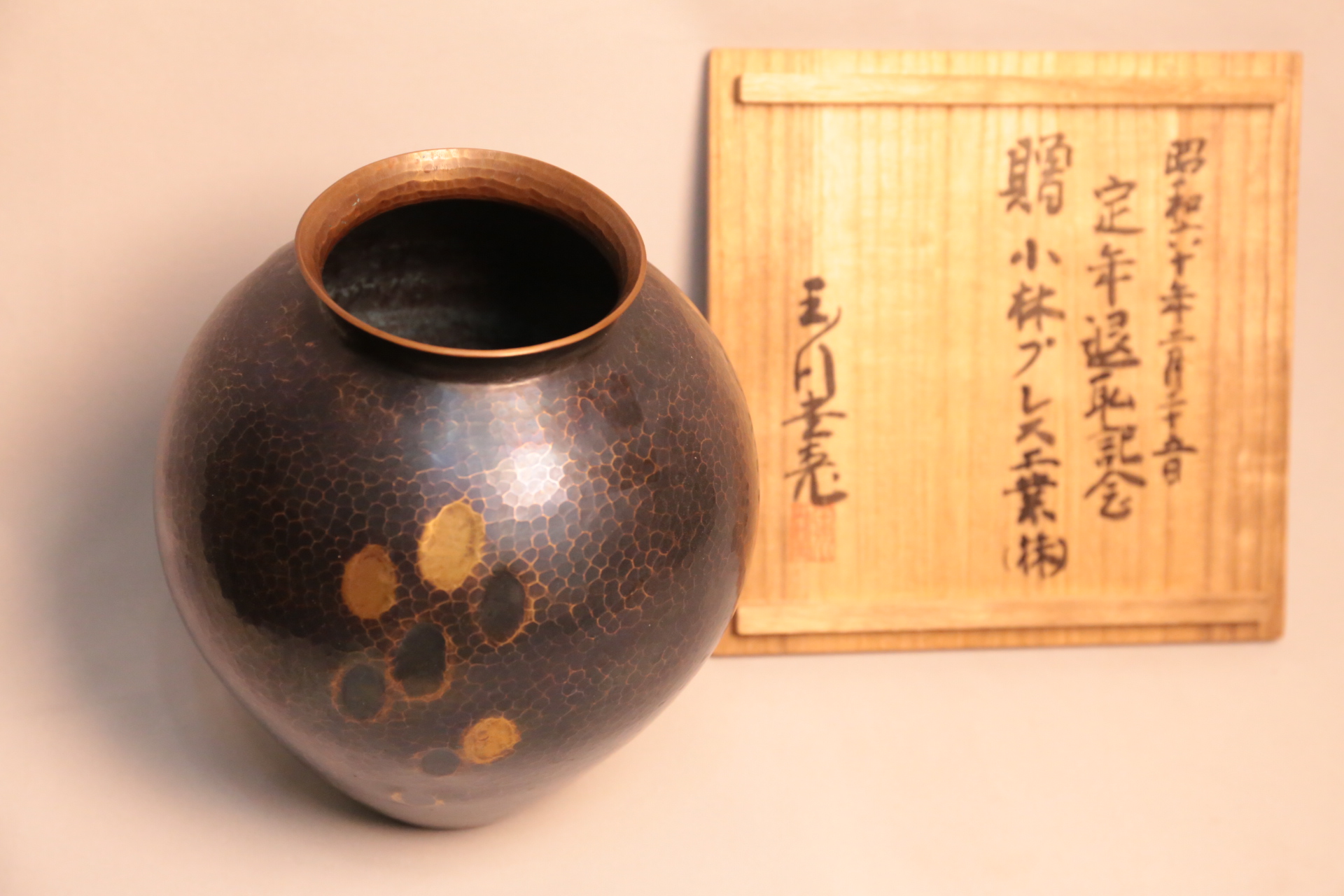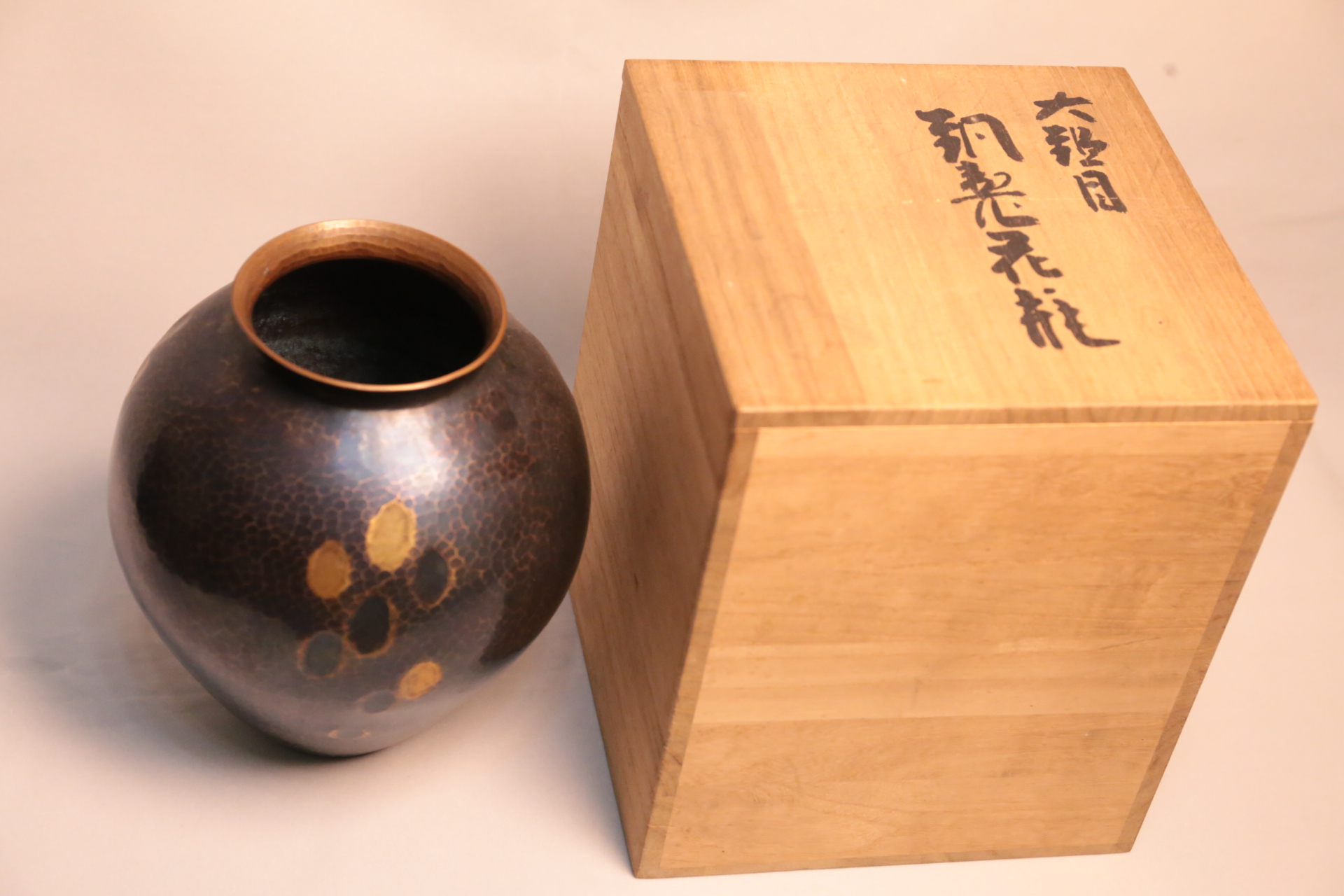 狀鎚紋。瓶底 玉川堂 落款章。共箱共布齊全。